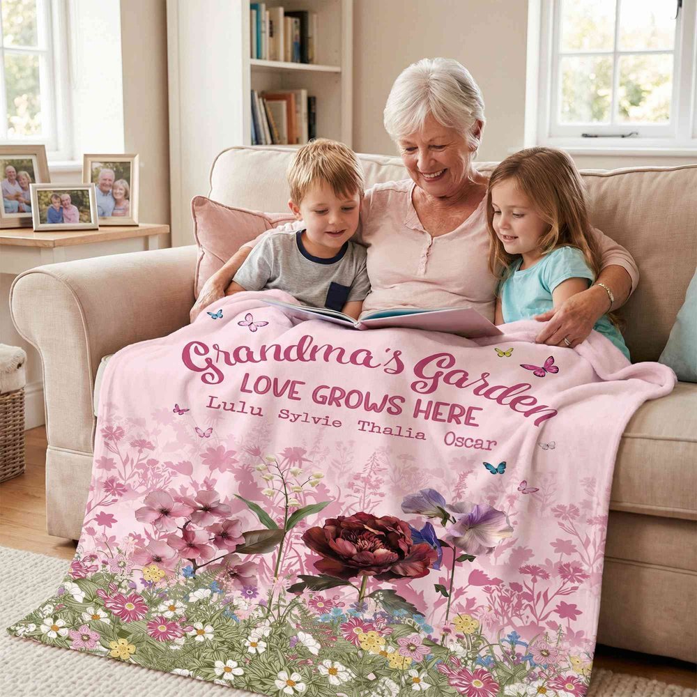 Personalized 1-12 Birth Flowers Soft Throw Blanket with Names and Text Home Decor Mother's Day Birthday Gift for Grandma