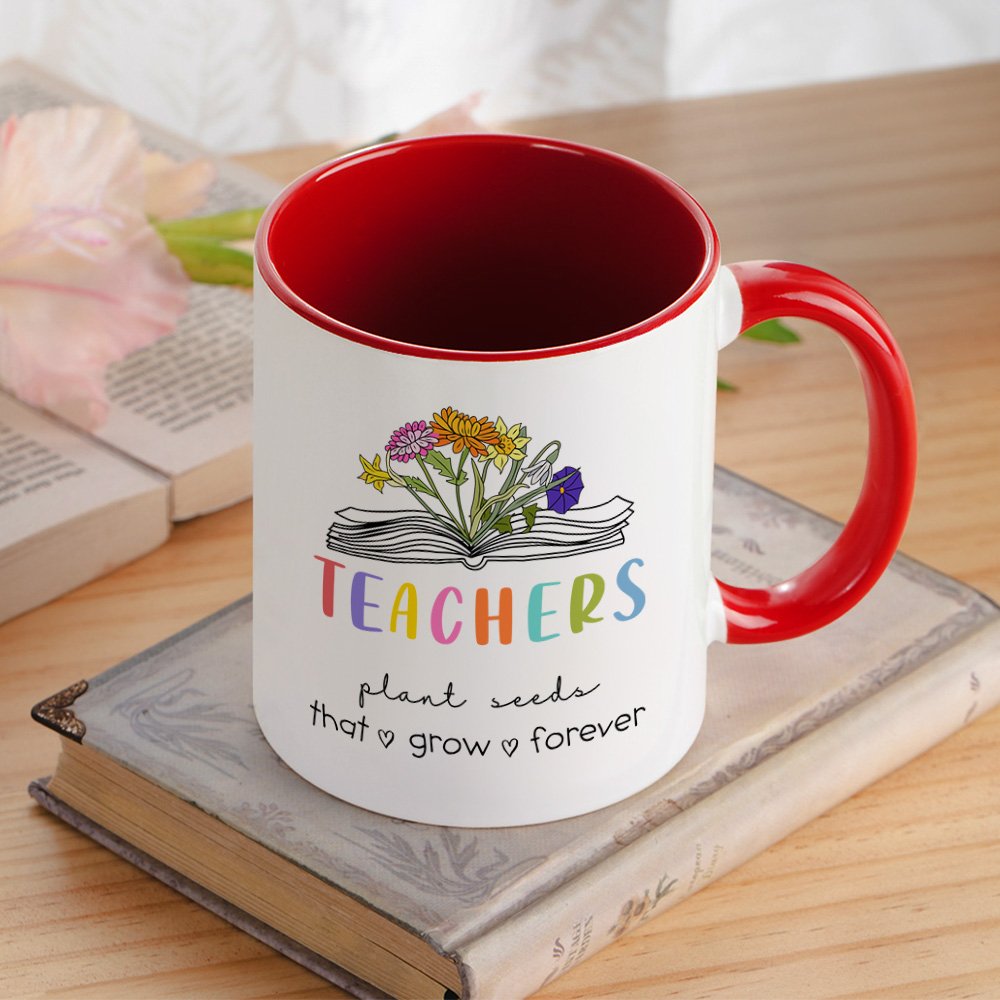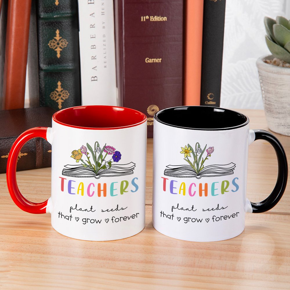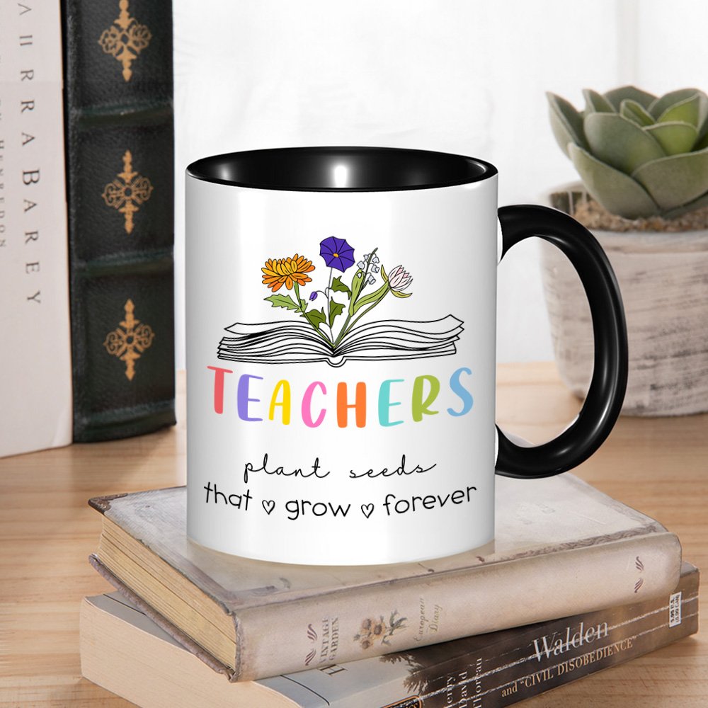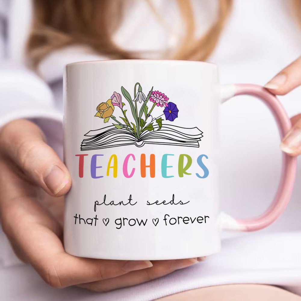 This mug is printed with a book and a birth flower bouquet. The teacher is a diligent gardener, cultivating and nurturing every student, like every flower in bloom. You can choose 1-6 birthday flowers. The mug is also printed with the text "Teacher Plants Seeds That Grow Forever", reflecting the students' strong gratitude to their teachers.