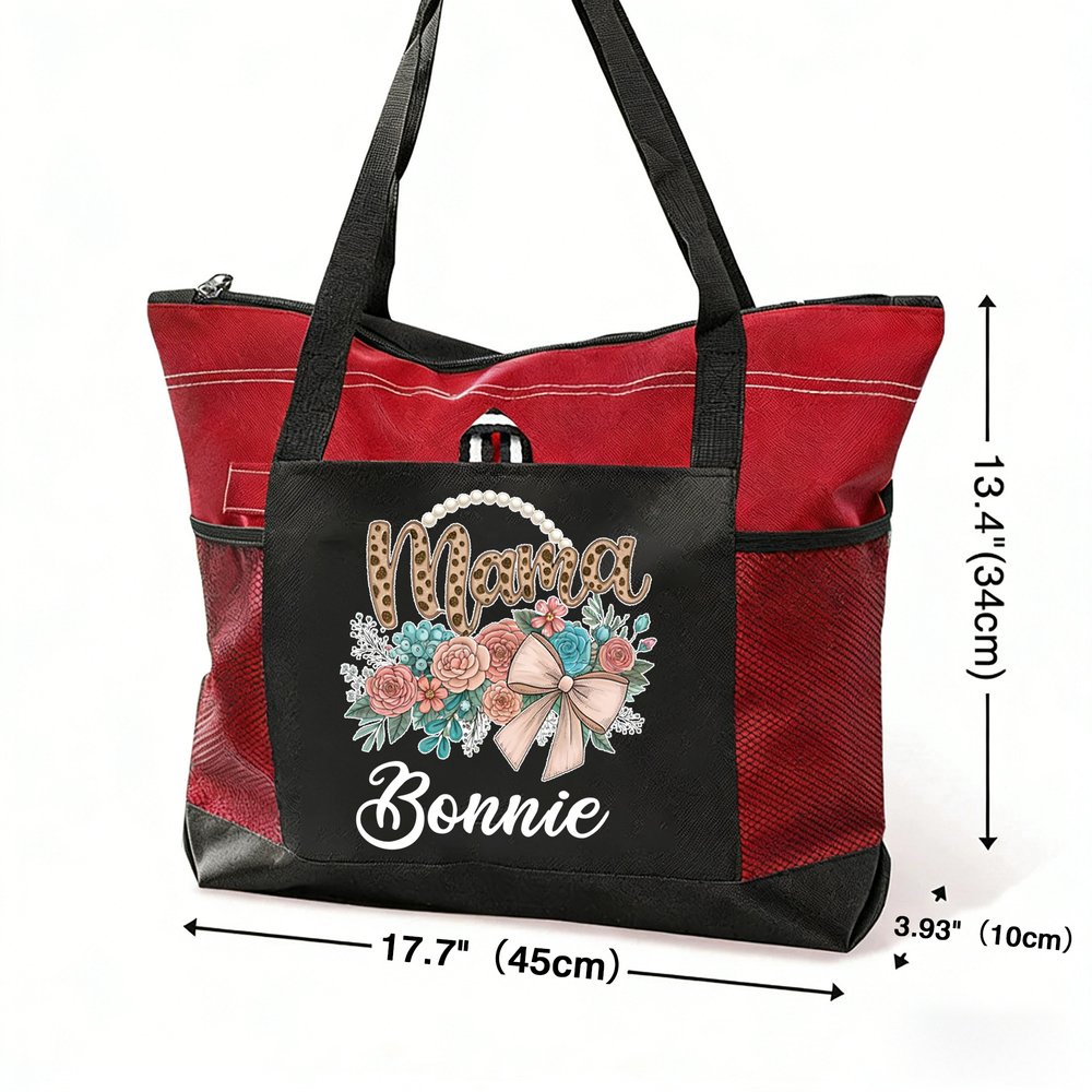 This Personalized Bow Floral Mama Tote Bag with Name features a charming floral and bow-themed "Mama" graphic (3 stylish patterns to choose from) paired with a custom name, crafted with multiple color options, blending feminine style with practical functionality to create the perfect everyday bag for moms, grandmas, and any special woman in your life.
