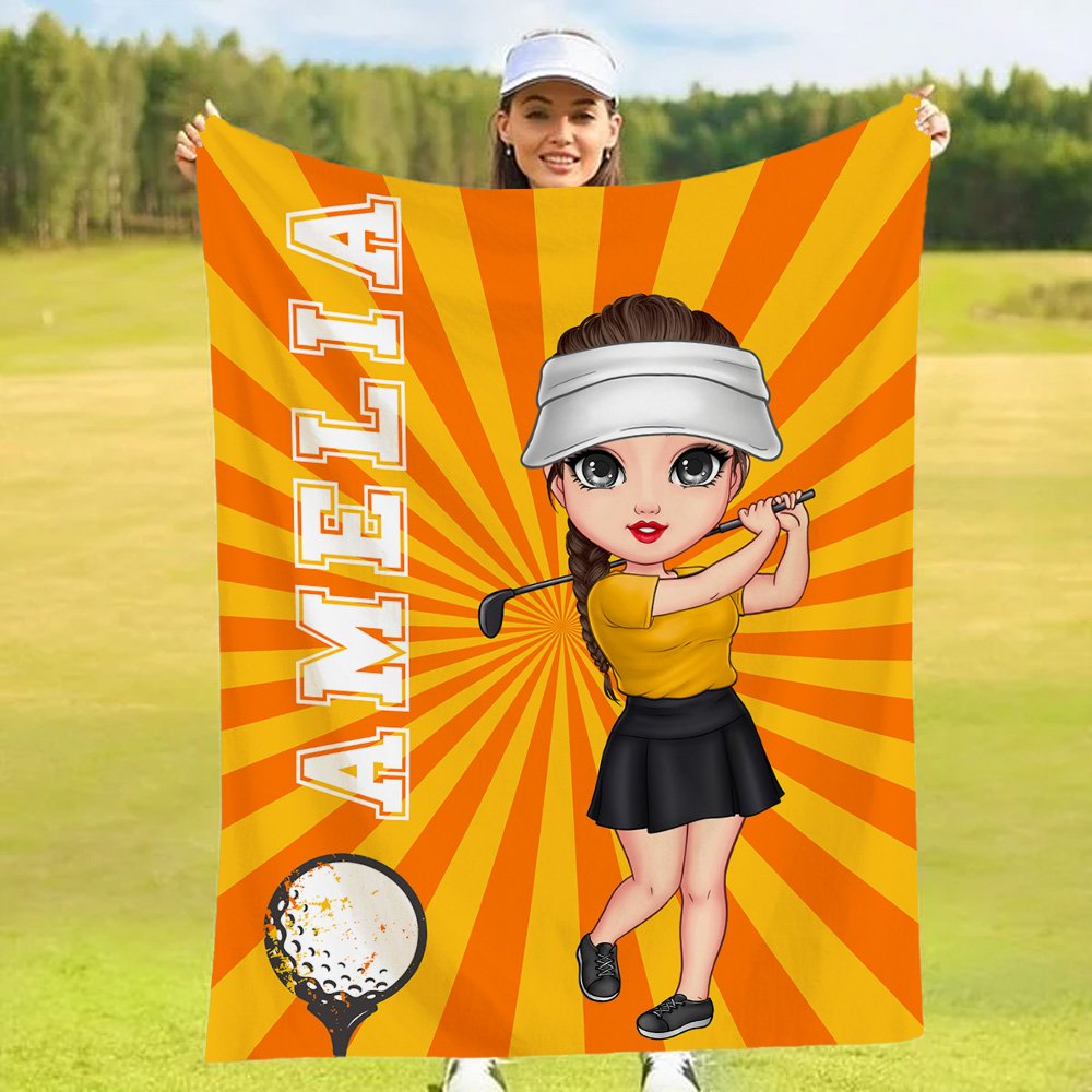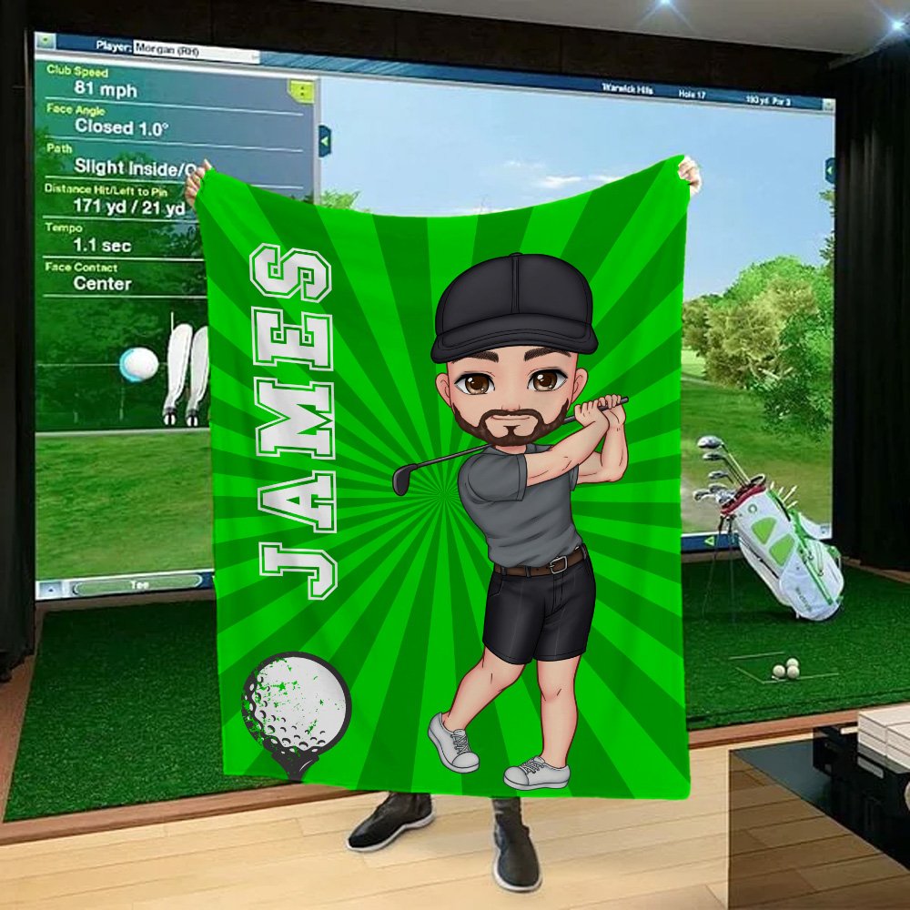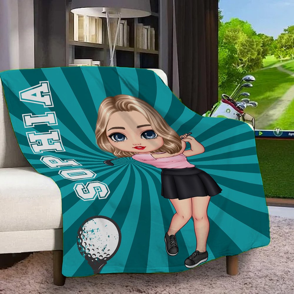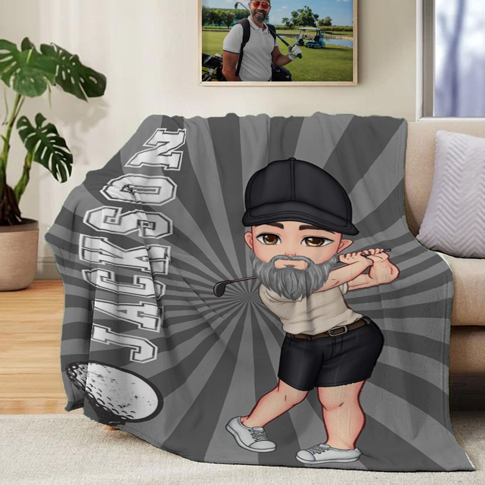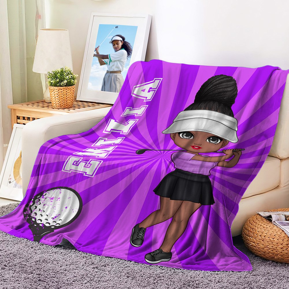 Personalized Cartoon Golf Player Multicolor Soft Throw Blanket with Name Home Decor Birthday Team Game Day Gift for Golf Enthusiasts