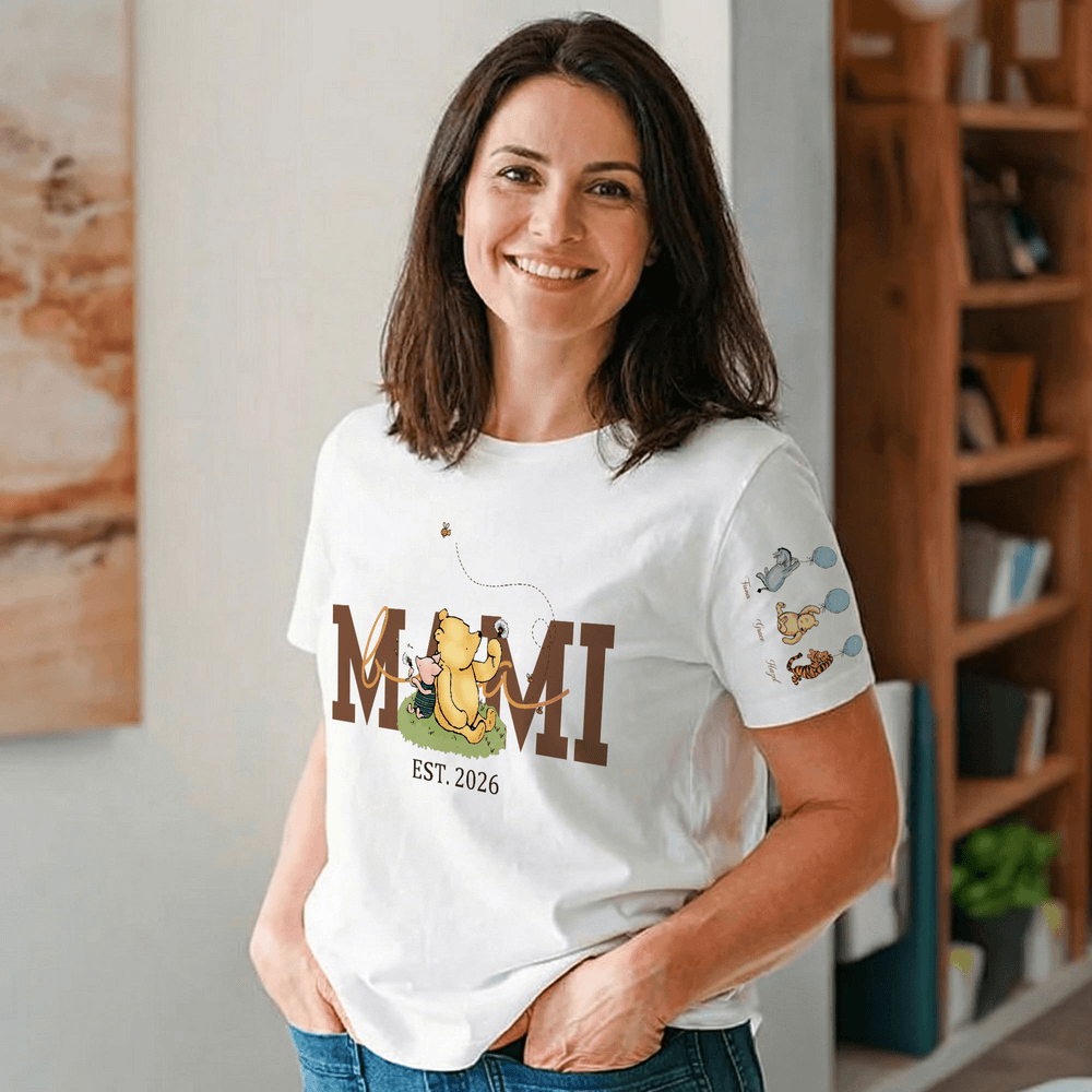 Personalized Classic Winnie the Pooh Multicolor Soft T-shirt Sweatshirt with Name and Year Birthday Mother's Day Gift for Mom Grandma