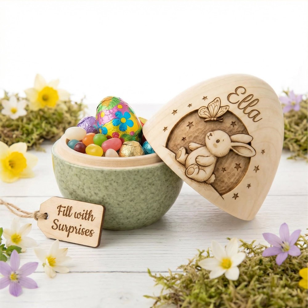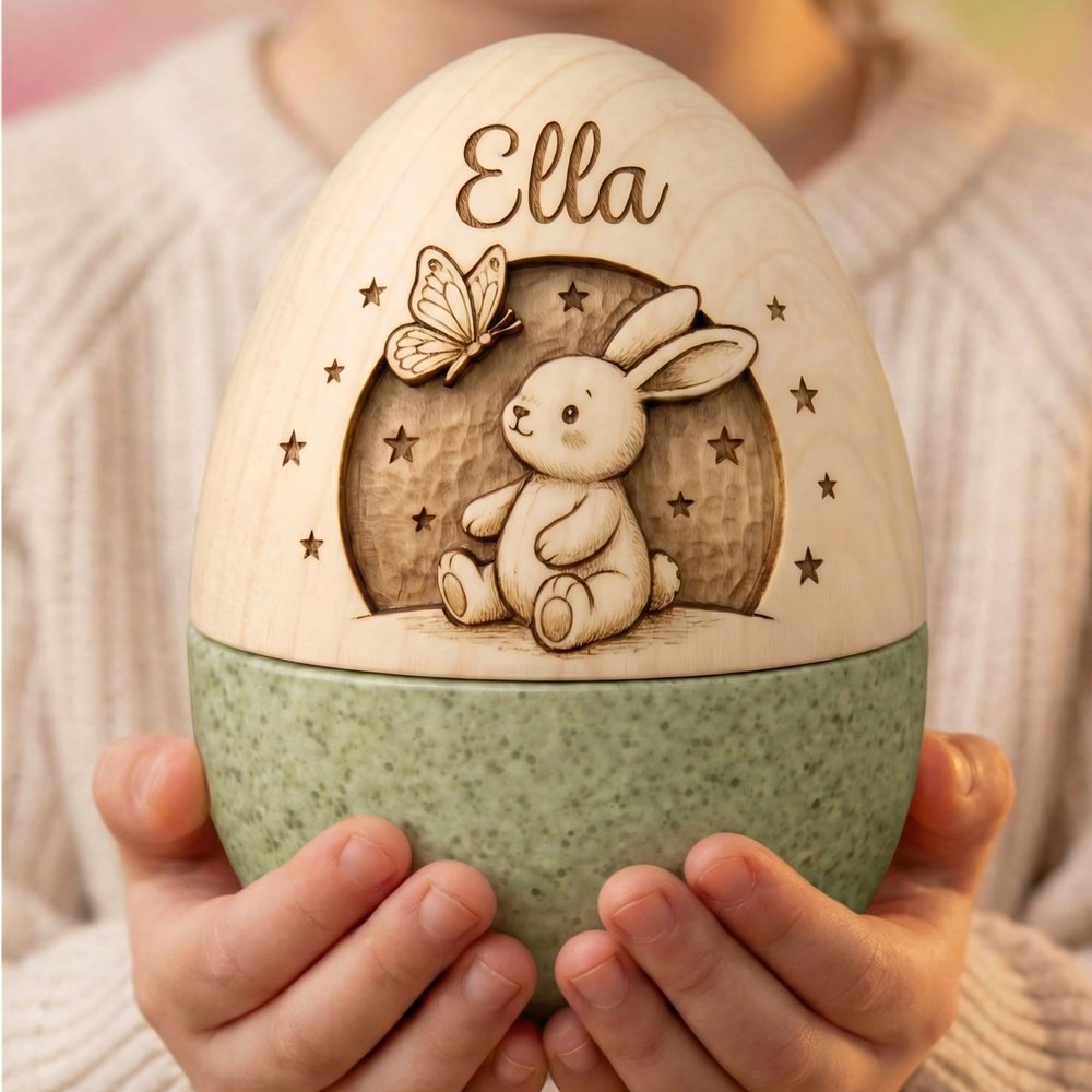 Surprise the little ones in your life with this thoughtful, personalized Easter gift. It’s an ideal choice for Easter baskets, baby’s first Easter, or as a springtime keepsake, offering a sustainable, memorable alternative to traditional plastic eggs that will be cherished for years to come.