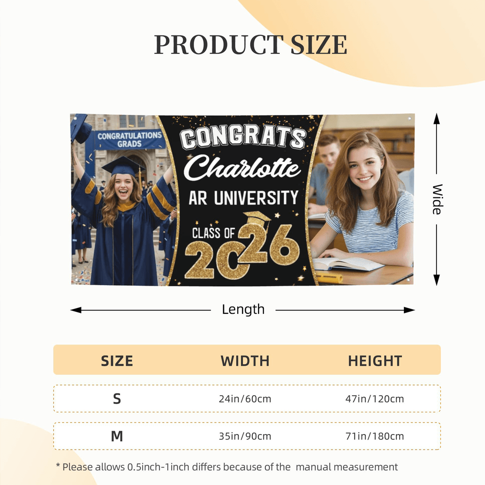 Made from premium polyester fabric, it boasts excellent drape, durability, wrinkle resistance, colorfastness, and is waterproof and easy to clean. High-definition printing ensures clear visuals. It can be hung to create a celebratory atmosphere or folded for long-term storage, allowing you to reminisce about your graduation.