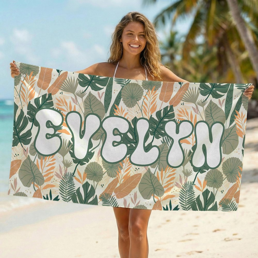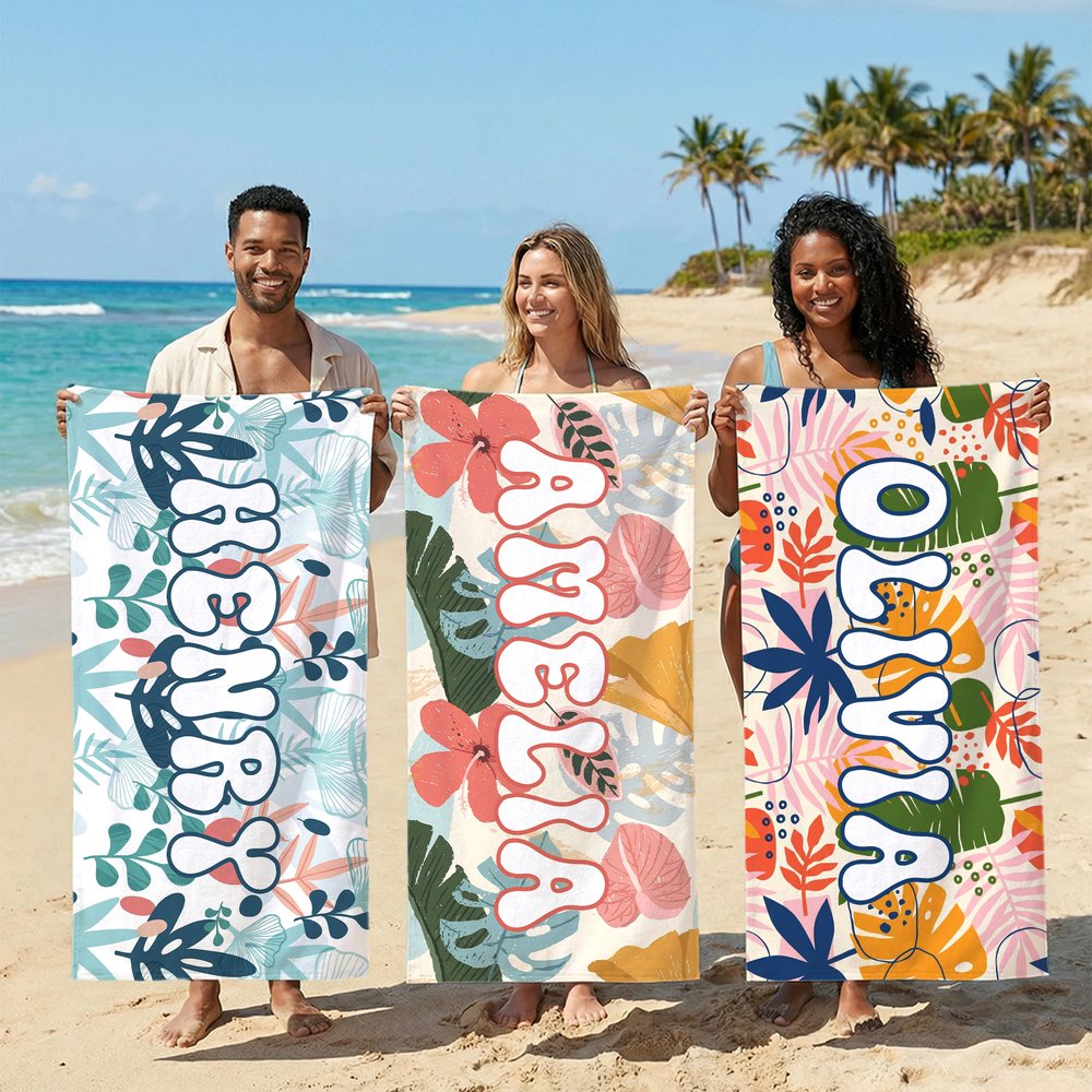 Rooted in a retro aesthetic, this beach towel features soothing prints of tropical plants and fresh flowers, boasting vibrant colors that instantly evoke a relaxed summer vibe. Its custom name printing eliminates the awkwardness of misplacing your towel at the beach, infusing every seaside trip with a unique personality and a sense of ritual.