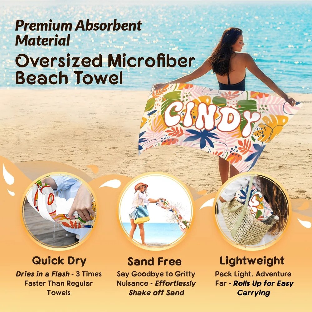 Whether you’re soaking up the sun at the beach, joining a lively pool party, taking a leisurely summer stroll, or simply lounging by the water, this personalized beach towel is your ideal companion. Its generous size provides ample coverage, making it perfect for lying down, drying off, or even using as a picnic blanket.